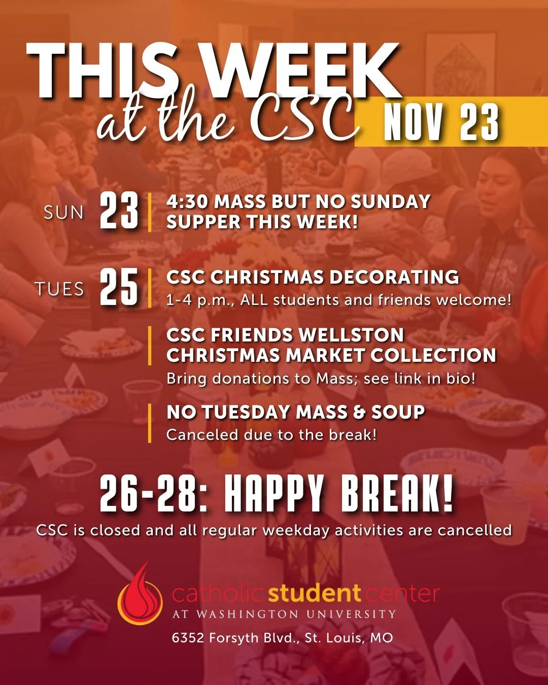 The Catholic Student Center at Washington University is a house of formation and a community of hospitality to students of any or no faith.